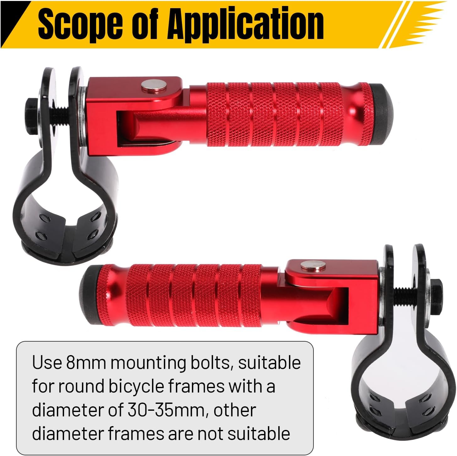 Aplicabilidad: utiliza pernos de montaje de 0.315 in, adecuados para marcos de bicicleta redondos con un diámetro de 1.181-1.378 in, otros marcos de diámetro no son adecuados