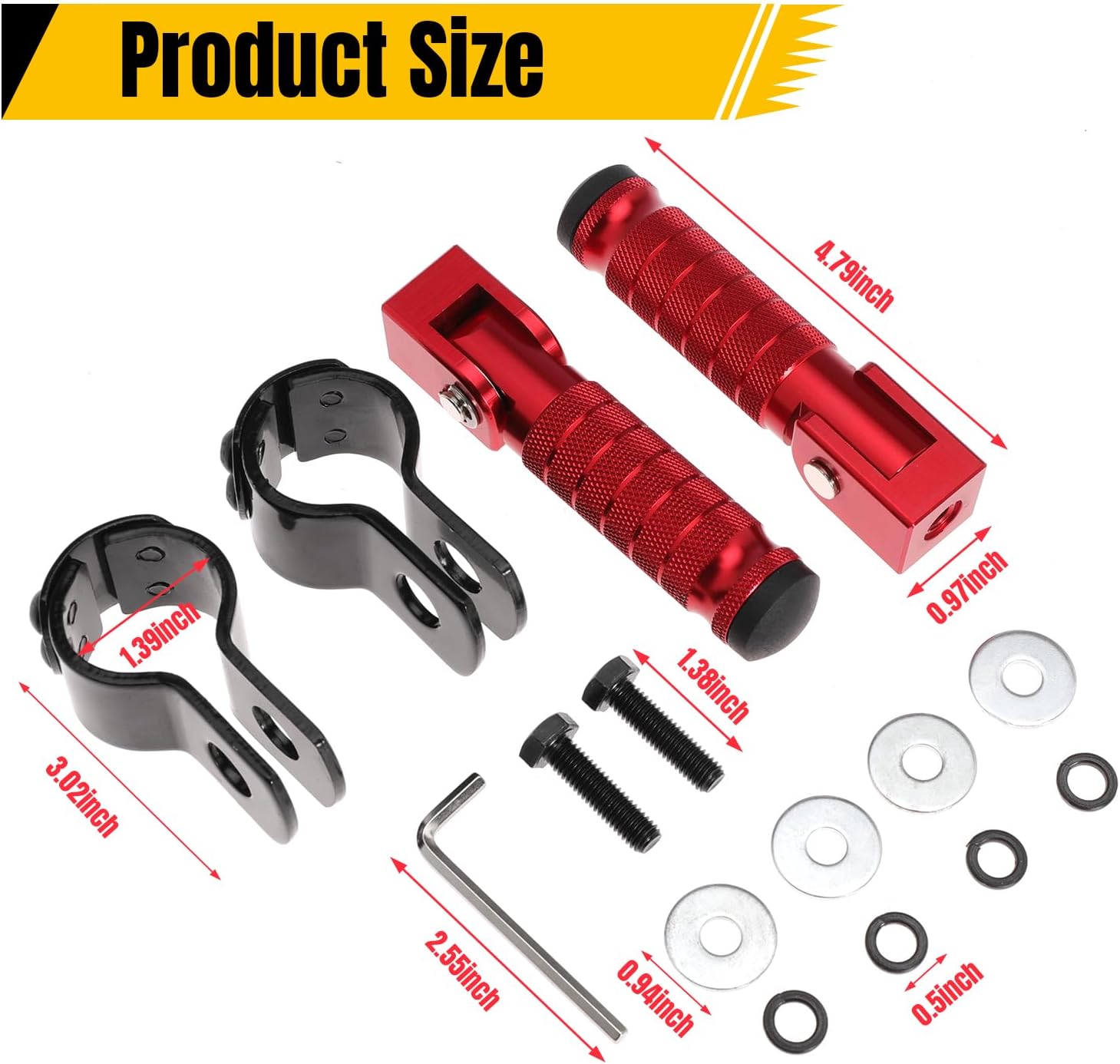 El paquete incluye: como se muestra en la figura, hay 1 par de clavos para pies y 1 par de clips de tubo gruesos, 1 kit de accesorios de instalación