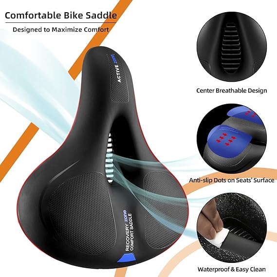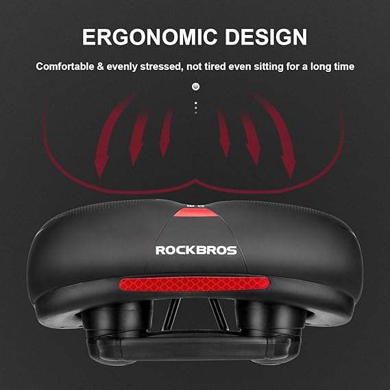 Q320.00 ROCKBROS Asiento de bicicleta cómodo para bicicleta de montaña, accesorios para hombres y mujeres. ★ Cómodo y transpirable: el asiento de bicicleta Rock Bros está acolchado con espuma viscoelástica de alta densidad, buena elasticidad y muy suave, no solo protege bien las nalgas, sino que también te hace sentir cómodo durante el ciclismo. Además, el diseño hueco en el medio hace que sea más transpirable ★ Doble absorción de golpes: con el fin de lograr un mejor efecto a prueba de golpes, hay dos bolas de goma colocadas debajo del asiento de la bicicleta para asegurar la absorción de los golpes procedentes de los golpes, baches o cualquier terreno difícil en el que estés montando ★ Resistente al agua y antideslizante: la superficie de poliuretano es efectivamente impermeable, no hay necesidad de preocuparse por que la espuma interna esté húmeda, textura de cuero PVC resistente al desgaste hace que sea más duradero. Además, la superficie del cojín de bicicleta está diseñada con puntos densos para aumentar la fricción y es antideslizante ★ Diseño humanizado más seguro: nuestro diseño de asiento de bicicleta con tira reflectante brillante alargada y amplia para una conducción más segura en la noche, el mango de seguridad detrás del asiento puede ser seguro de sostener cuando lleves a tu amigo junto. Además, puedes agarrarlo fácilmente cuando lleves tu bicicleta ★ Universal se adapta a casi todas las bicicletas: este asiento de bicicleta se adapta a casi todas las bicicletas estándar, tales como bicicletas de montaña, bicicletas de carretera, bicicletas plegables, BMX, bicicletas eléctricas y así sucesivamente. También es fácil de instalar, que incluye herramientas de montaje estándar, abrazadera de riel de asiento de bicicleta se puede montar en cualquier poste de sillín estándar, doble pista o tubo de abrazadera fácilmente, perfecto para hombres, mujeres, niños, niñas, todo el mundo. Enviamos a toda la republica pago contra entrega. Aceptamos tarjeta de crédito y debito.