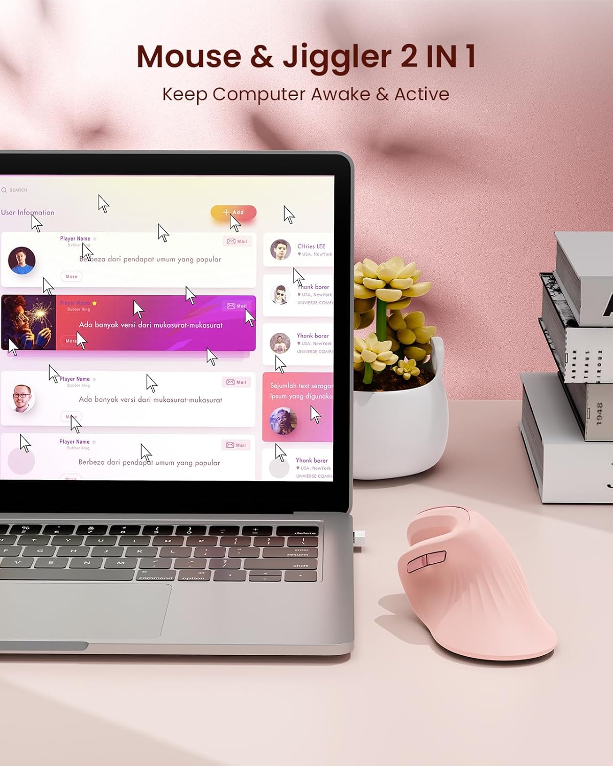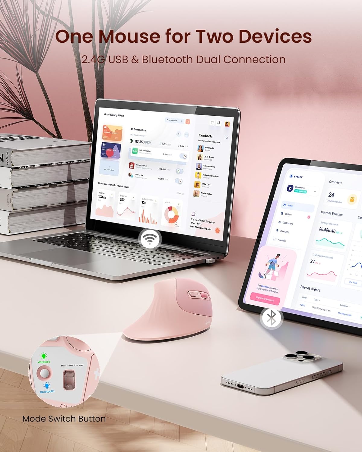 Q395 seenda Mouse ergonómico con Jiggler – Ratón vertical inalámbrico con conexión multidispositivo