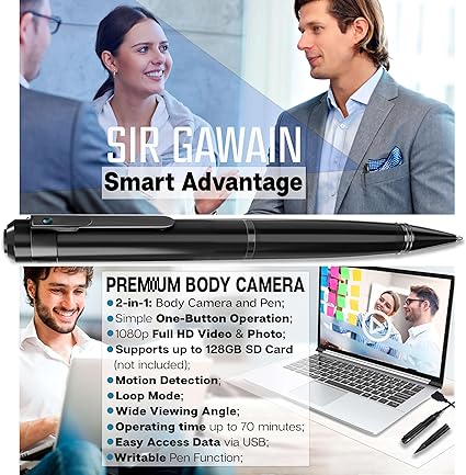 Q395.00 SIRGAWAIN Bolígrafo de cámara corporal premium, video y fotos Full HD de 1080p Enviamos a toda la republica pago contra entrega. Aceptamos tarjeta de crédito y debito.