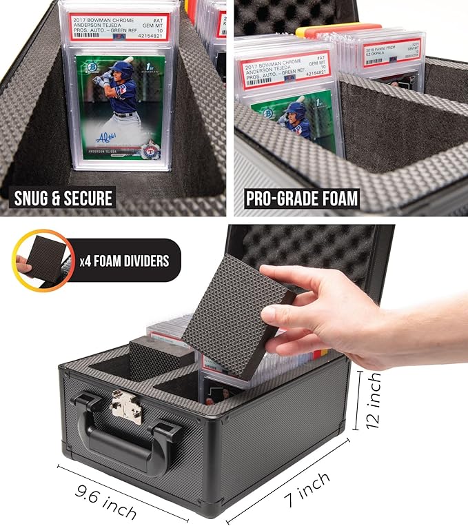 Q545.00 SLAB ARMOR – Caja de almacenamiento de tarjetas graduadas de 2 filas para tarjetas PSA aluminio Pequeña caja de almacenamiento de tarjetas con calificación PSA: nuestra caja de almacenamiento de tarjetas deportivas con certificación TSA Lock está especialmente diseñada para albergar tarjetas graduadas PSA. La funda para tarjetas ofrece un ajuste cómodo para mantener tus tarjetas en perfectas condiciones. Estuche de losa pequeña para tarjetas graduadas: esta funda para exhibición de tarjetas está diseñada para durar, nuestra funda de losa graduada es resistente y confiable. ¡El regalo perfecto para coleccionistas de tarjetas! Estas cajas de almacenamiento de tarjetas deportivas protegen tu colección del polvo, la humedad y el manejo diario. Estuche pequeño para tarjetas deportivas de 2 filas: eleva tus tarjetas clasificadas PSA con nuestro estuche de losa PSA premium. Esta funda para tarjetas PSA proporciona la máxima protección, añadiendo una capa adicional de seguridad para tu colección. Pequeña funda de losa Psa de 2 filas: esta funda de viaje para tarjetas coleccionables es versátil y duradera, nuestra caja de almacenamiento de tarjetas deportivas graduada es ideal para todos los entusiastas de las tarjetas deportivas. Esta caja estilo funda Zion ofrece protección premium y portabilidad elegante. Pequeño estuche para tarjetas graduadas: Maletín ideal para tarjetas intercambiables, desde losas PSA hasta tarjetas de béisbol, esta caja de losas PSA es imprescindible. Nuestra funda para tarjetas de béisbol le da a tus tarjetas un espacio dedicado y seguro, protegiéndolas de daños ambientales. Enviamos a toda la republica pago contra entrega. Aceptamos tarjeta de crédito y debito.