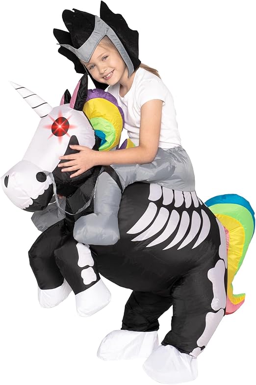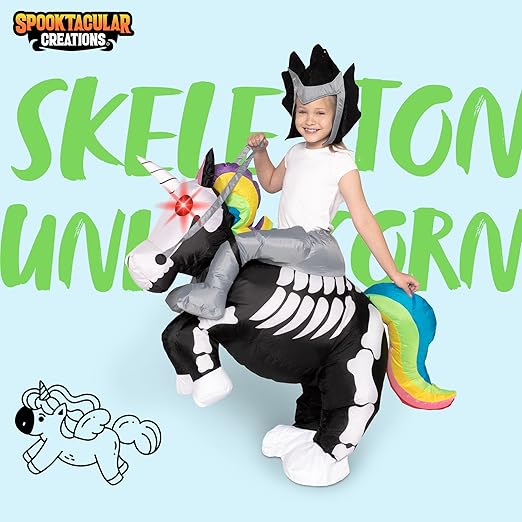 Q345.00 Spooktacular Creations Inflatable Costume Kids Unicorn Skeleton Blow Up Costumes Riding a Unicorn Cómodo y fácil de lavar: este disfraz de unicornio inflable para niños es muy fácil de mantener: lavar a mano solamente, agua fría, no iluminar, fácil de cuidar y limpiar (quitar la herramienta de inflado y la caja de alimentación antes de limpiar por asuntos de seguridad). Duradero y hecho con cuidado. 100% poliéster. Tamaño: Este disfraz de unicornio para niños está disponible en tamaño S (4-6 años, 3 pies 3 pulgadas a 3 pies 11 pulgadas). M (7-10 años, 3 pies 11 pulgadas – 4 pies 7 pulgadas), este es para talla pequeña. Calidad prémium: nuestro disfraz de unicornio de esqueleto para niños es súper duradero y fabricado con mayor calidad. El material está hecho de 100% poliéster. Rápido y fácil de inflar y desinflar con una herramienta de inflado de alta potencia. Obtén este distintivo disfraz inflable de esqueleto de unicornio, diseñado con unicornio esqueletizado con melena y cola de arcoíris que te hará montar como un viento montando en una criatura mítica Ocasiones versátiles: perfecto para varias ocasiones, incluyendo fiestas de disfraces de Halloween, eventos de cosplay, fiestas temáticas, actuaciones en escenario y diversión de juego de rol. Seguro que será el disfraz más llamativo dondequiera que vayas Enviamos a toda la republica pago contra entrega. Aceptamos tarjeta de crédito y debito.