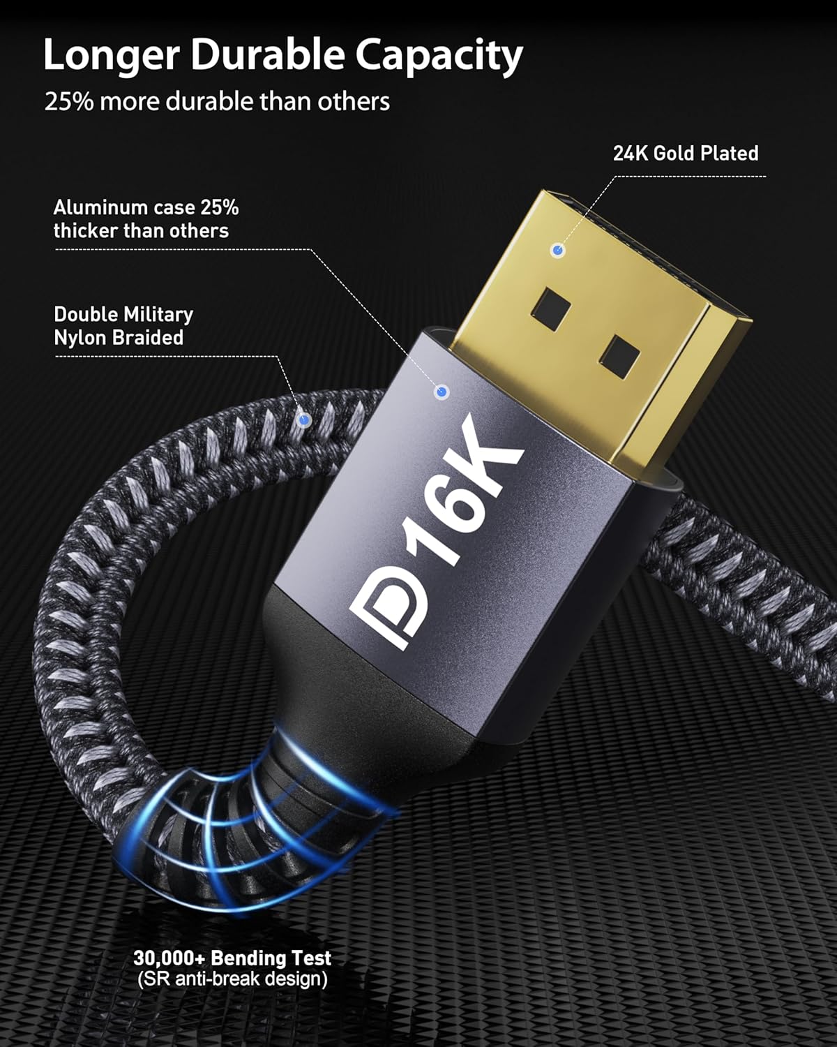 Resoluciones más altas de 16K a 60 Hz: el cable 2.1 de pantalla Stouchi de 16K soporta altas resoluciones 16K (15360×8460) @60Hz, 8K (7680×4320) @60Hz, 5K (5120×2880) @60Hz, 4K (3840×2160) @ 60 Hz /120Hz/144Hz, 2K (1080P/1440P) @120Hz/165Hz/180Hz/240Hz. Compatible con DisplayPort 1.4 1.3, 1.2.