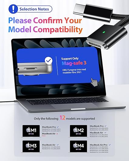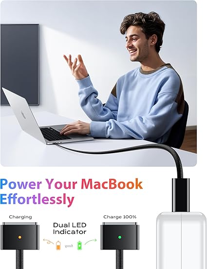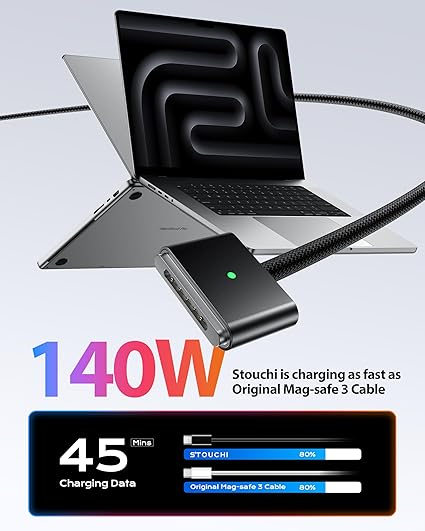 - Cable de carga de repuesto ideal o de respaldo: el cable magnético Stouchi 3 sirve como un reemplazo perfecto para tu cable original o como una copia de seguridad confiable, reduciendo el desgaste de la conexión y desconexión frecuentes del cable de carga original de tu MacBook
