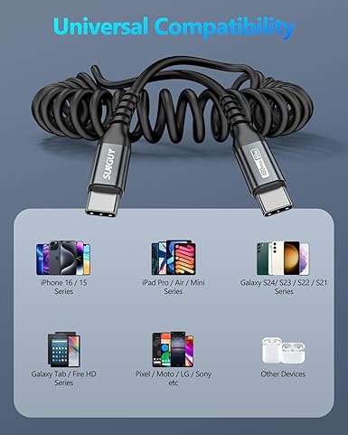 ![SUNGUY Cable USB C a USB C en espiral de 3 pies, [paquete de 2] Cable USB-C para automóvil. - Imagen 3](https://memeshopestore.com/wp-content/uploads/2025/09/61W0x-mDfkL._SX385_.jpg)