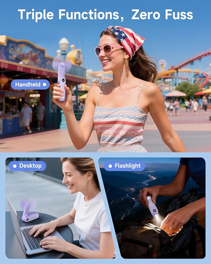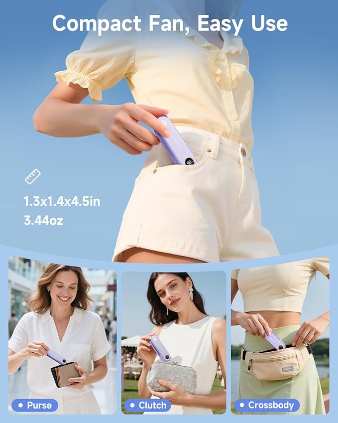 Q145 SWEETFULL Mini ventilador portátil de mano con pantalla LED, 3 en 1 plegable recargable por USB [Compacto y elegante] El adorable diseño de oso combina un enfriamiento práctico con un toque de moda. El pequeño ventilador lindo de SWEETFULL mide solo 1.4 x 1.3 x 4.7 pulgadas y pesa solo 3.42 onzas, sirviendo como un versátil ventilador de mano y ventilador para pestañas para maquillaje. 【Plegable y portátil】 La apertura amigable para las uñas, el diseño plegable de 360° permite que se deslice fácilmente en tu bolsillo o se cuelgue de tu mano (cordón incluido), haciéndolo adecuado como un ventilador personal de mano y un accesorio de enfriamiento mini. [6-12 horas de funcionamiento y pantalla LED] Este pequeño ventilador cuenta con una batería recargable, que ofrece un tiempo de funcionamiento prolongado y monitoreo del nivel de batería en tiempo real a través de su pantalla LED, un regalo ideal para niñas, madres y mujeres. Ventilador eléctrico portátil | [Potente y silencioso] El motor de alta calidad y las aspas suaves proporcionan un flujo de aire constante, silencioso y seguro, lo que lo convierte en el ventilador portátil perfecto para viajes, parques, bodas, eventos deportivos y artículos esenciales de vacaciones. 【Función de linterna de emergencia】Se convierte en una linterna conveniente (presione dos veces para activar. ), asegurando la preparación para aventuras nocturnas o situaciones inesperadas, un ventilador de mano imprescindible para viajes y actividades al aire libre. Enviamos a toda la republica pago contra entrega. Aceptamos tarjeta de crédito y debito.