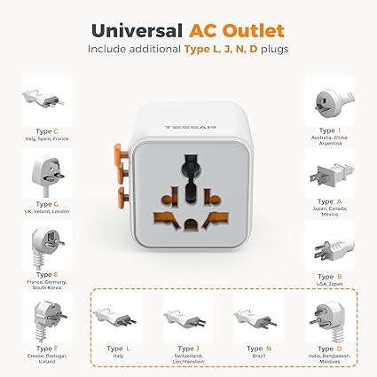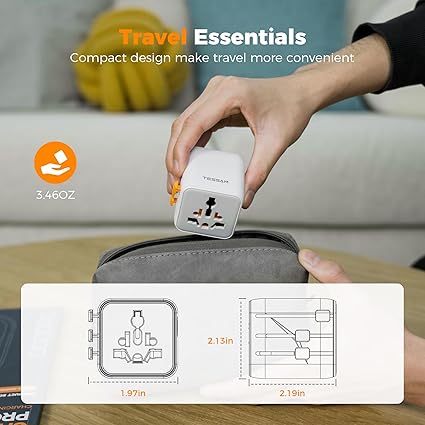 Q185.00 TESSAN Adaptador de viaje universal, adaptador de corriente internacional Adaptador de viaje en todo el mundo: Este adaptador de corriente universal cubre más de 150 países: Tipo C para la mayor parte de Europa, Italia, España, Francia, Alemania; Tipo G para Reino Unido, Irlanda, Escocia, Británico; Tipo I para Argentina, Australia, Fiji, China; Tipo A para Japón, EE. UU., México Salida de CA doble: el adaptador de viaje universal TESSAN tiene una salida estándar de 2 clavijas de EE. UU. y una salida versátil, carga 2 dispositivos al mismo tiempo sin bloqueo; el adaptador de viaje internacional puede conectar dispositivos de diversos países (excepto Sudáfrica) en la toma de corriente alterna universal frontal; salida de CA de 2 clavijas en el lateral, adecuado para Japón, EE. UU Ahorro de espacio: el tamaño y el peso portátiles de este adaptador de enchufe universal son de 2.19 x 2.13 x 1.97 pulgadas y 3.46 onzas, el adaptador de enchufe de viaje en todo el mundo ahorra espacio en tu maleta y bolso; sin protección contra sobretensiones ni cables, el adaptador de viaje universal TESSAN es un artículo totalmente esencial para cruceros Fusible doble de 10 A: los adaptadores de corriente para viajes internacionales tienen fusibles reemplazables duales de 10 A, evitando eficazmente daños en los dispositivos por sobrecorriente; el adaptador de corriente de viaje le proporciona un entorno de carga confiable Consejos: este adaptador de enchufe internacional funciona en dispositivos de voltaje ancho de 100 V a 250 V; si quieres usar tu secador de pelo, plancha o rizadores, necesitan soportar un amplio voltaje Enviamos a toda la republica pago contra entrega. Aceptamos tarjeta de crédito y debito.