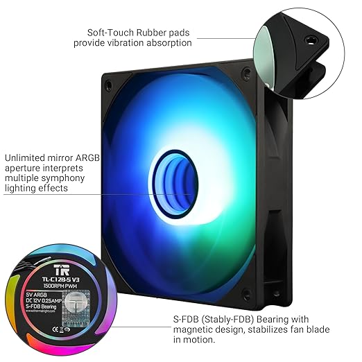 Thermalright Ventilador de CPU TL-C12B-S V3 de 4.724 in, ventilador de enfriador de carcasa ARGB