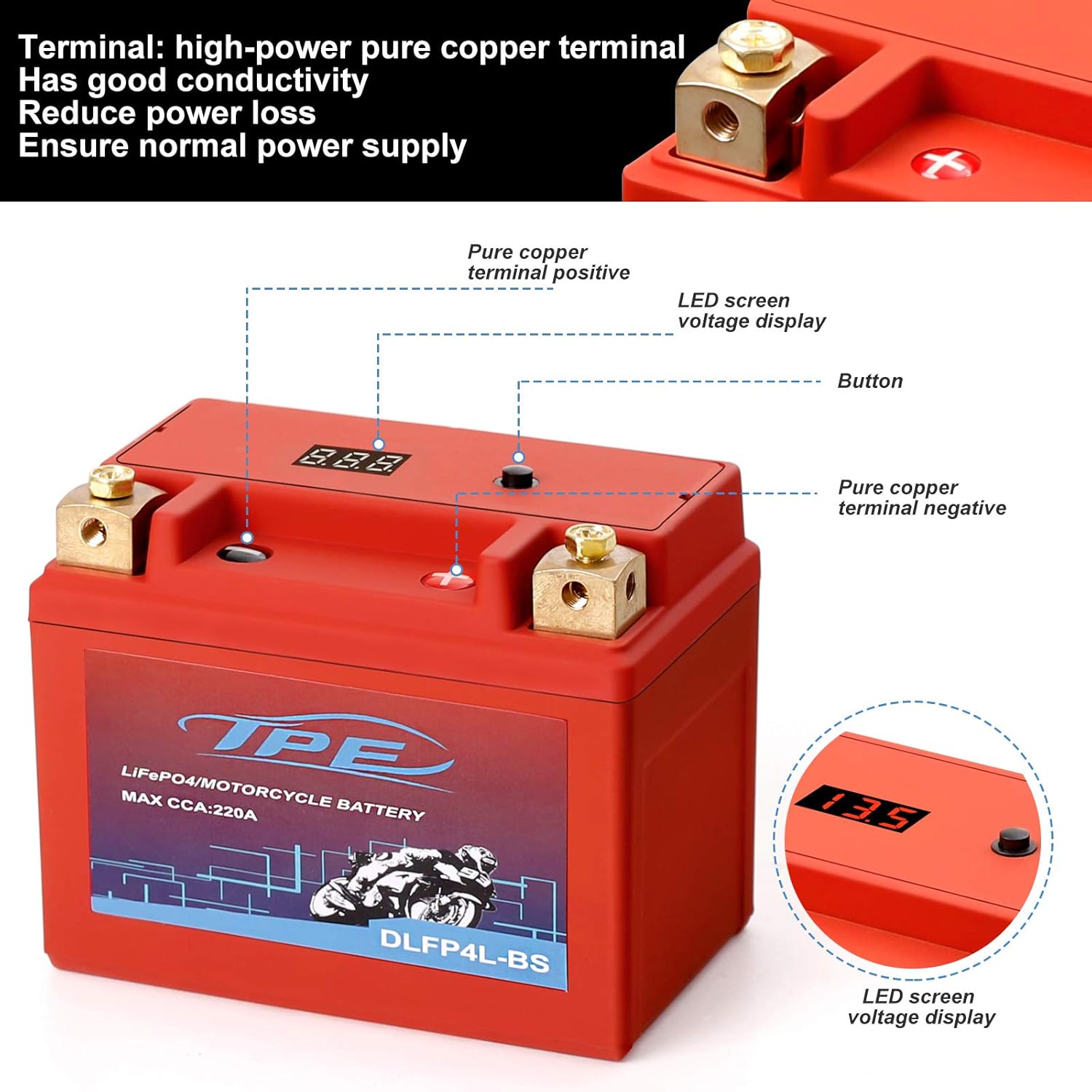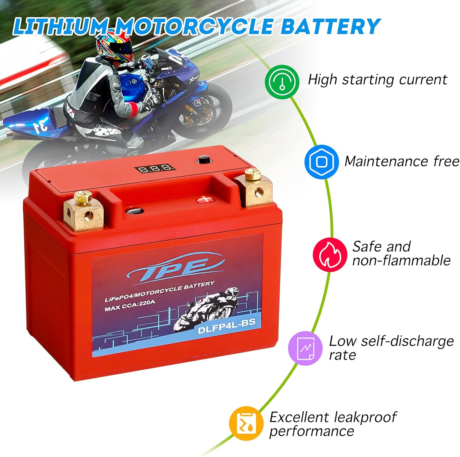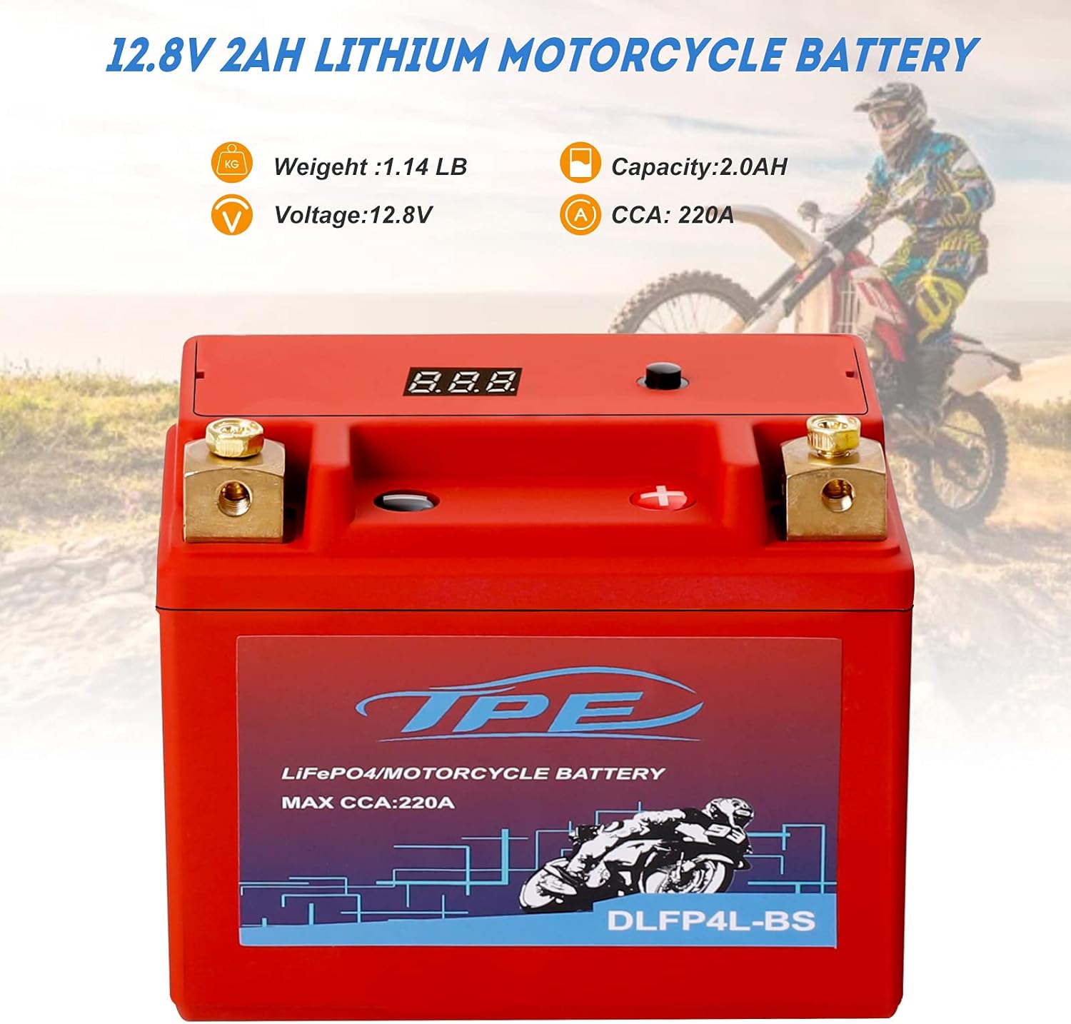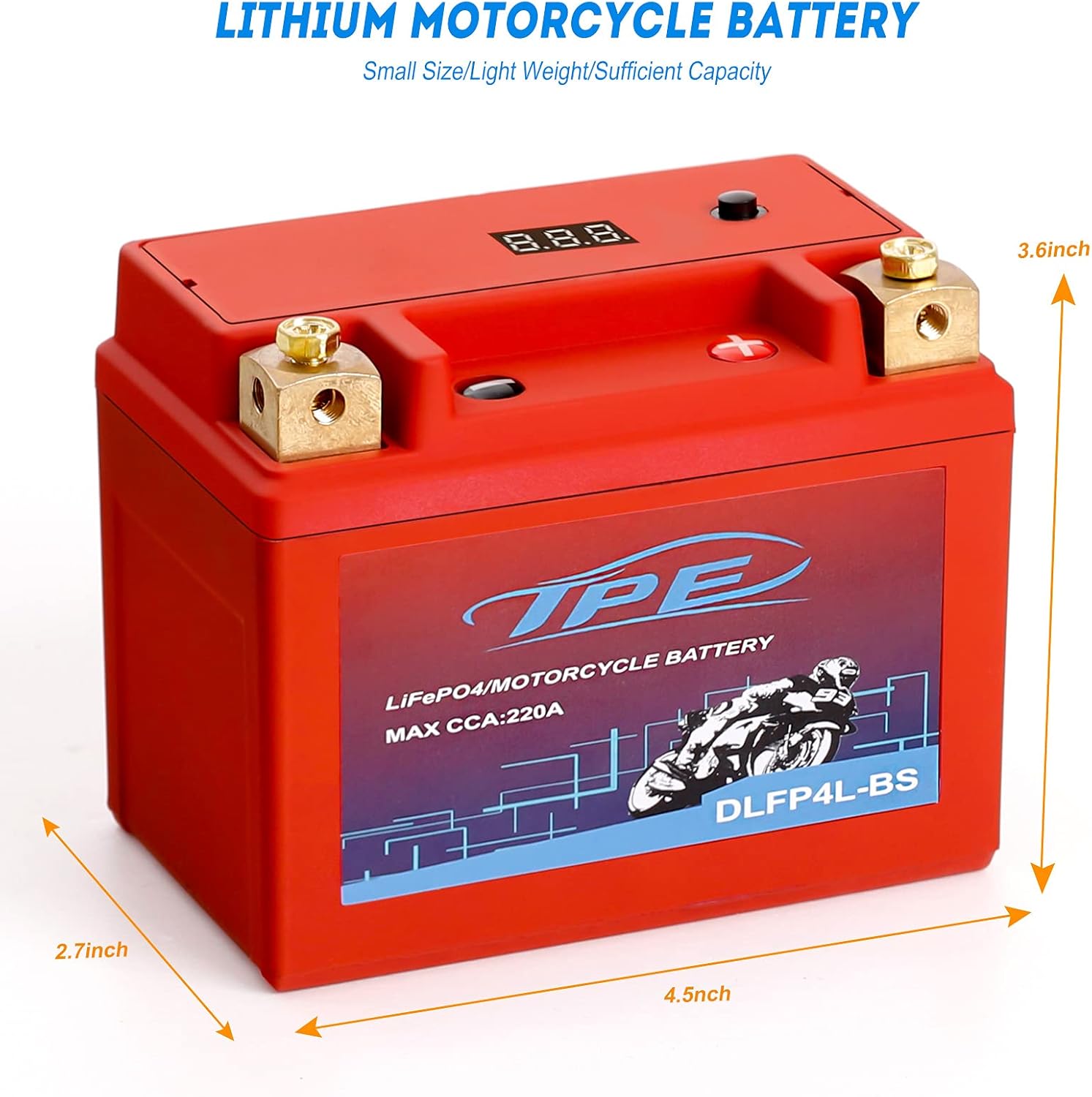 Excelente rendimiento: ligero (1.46 libras), el peso es solo un tercio de la batería de plomo-ácido, la densidad de energía es grande, su peso y densidad de energía es de 3 a 5 veces mayor que la de la batería de plomo-ácido, el rango de temperatura de trabajo es grande, puedes arrancar fácilmente el arrancador de motocicleta de Fahrenheit a 140°F.