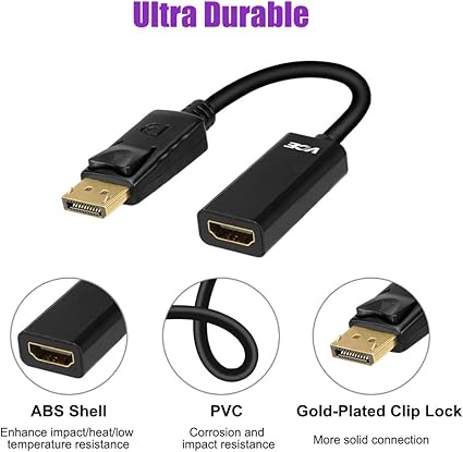 Q135 VCE Adaptador DisplayPort a HDMI, puerto de pantalla chapado en oro a HDMI (1 unidad) El adaptador de cable DisplayPort conecta una laptop o computadora de escritorio equipada con DisplayPort (DP, DP++, DisplayPort++) a un HDTV, monitor o proyector con entrada HDMI; se requiere un cable HDMI (se vende por separado) Soporta resoluciones de video de hasta 1920×1200/1080P (Full HD) y canales de audio digitales 7.1, 5.1 o 2 sin comprimir Transmite audio y video de alta definición desde su computadora a un televisor de alta definición para transmisión de video o juegos (solo señal de DP a HDMI); Conecte y configure su monitor para un escritorio extendido o pantallas espejadas Los conectores chapados en oro resisten la corrosión, proporcionan durabilidad y mejoran la transmisión de la señal; el conector DisplayPort con pestillos proporciona una conexión segura con un botón de liberación que debe presionarse antes de desenchufar Nota: Es un adaptador de transmisión pasivo unidireccional (de DP a HDMI); no compatible con puerto USB. Enviamos a toda la republica pago contra entrega. Aceptamos tarjeta de crédito y debito.
