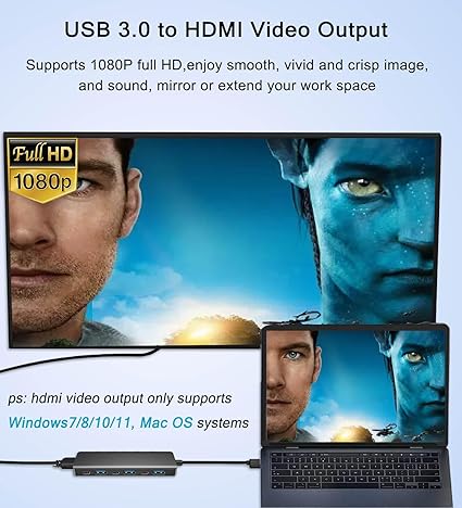 Q225 VIENON Adaptador USB 3.0 a HDMI (7 en 1) con puertos de alimentación y datos USB C 【USB 3.0 a HDMI】: Este adaptador USB 3.0 a HDMI se utiliza para conectar dispositivos USB (computadora, computadora portátil, escritorio) con dispositivos HDMI (monitor, proyector, TV) para una solución multimonitor. Admite el modo espejo y el modo de extensión con imagen de resolución HD de 1920 x 1080, compatible con Windows 7/8/10 y sistema Mac OS (Windows 7 no admite el modo de extensión actualmente). 【Acerca de la instalación del controlador】: no te preocupes, este controlador integrado de USB a hdmi hub, simplemente conecta el dispositivo a la computadora, luego abre el disco extraíble “, encuentra el controlador correspondiente, haz clic en instalar y luego reiniciar la computadora se puede usar. 【Puerto de alimentación USB C】: este concentrador USB 3.0 a HDMI viene con un puerto de carga USB C, admite fuente de alimentación CC para el concentrador, carga los periféricos USB insertados. Para evitar una fuente de alimentación insuficiente causada por la conexión de varios dispositivos de alta potencia al mismo tiempo en el Hub, y garantizar una transmisión estable de todas las interfaces. 【Transferencia de datos de alta velocidad】: con 1 x USB 3.0, 2 x USB 2.0, 2 puertos de datos USB C, USB 3.0 admite transferencia rápida de datos de 5 Gbps, que es conveniente para conectar disco U, disco duro; los puertos de datos USB 2.0 y USB C admiten 480 Mbps, que es adecuado para conectar mouse, teclado, teléfono, impresora y más periféricos USB. Enviamos a toda la republica pago contra entrega. Aceptamos tarjeta de crédito y debito.