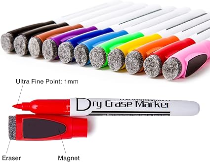 Q125 Volcanics Rotuladores magnéticos con tapa de borrador bolígrafos de pizarra blanca, paquete de 12 Seguro de usar: tinta certificada no tóxica y fórmula especial de bajo olor Atrevido y consistente: color vivo altamente visible incluso a larga distancia, perfecto para entornos como conferencias de clase y reuniones de oficina Perfecto compañero de escritura: secado rápido, sin manchas, sin trazos de tinta discontinuos y sin fugas de tinta. La tinta a base de agua es fácil de limpiar con un paño. A prueba de manchas, no deja ningún rastro en la superficie Juego de 12 marcadores de punta fina: este marcador de borrado en seco se desliza con fluidez en la mayoría de superficies lisas como pizarras blancas (no para pizarras de tiza), espejos, vidrio, tarjetas de papel, azulejos de cerámica, etc Combina perfectamente con el calendario de borrado en seco y el adhesivo de pizarra blanca. Enviamos a toda la republica pago contra entrega. Aceptamos tarjeta de crédito y debito.