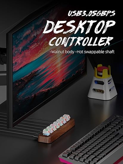 Q285 Walnut Wood Hub USB 3.0 alimentado por 7 puertos, transferencia de datos de 5 Gbps 1. Diseño único: este HUB USB 3.0 de madera de nogal de 7 puertos cuenta con iluminación RGB, y cada puerto USB se controla independientemente por un interruptor de bricolaje reemplazable en caliente (compatible con Cherry MX Switch para teclados mecánicos del mismo tipo). 2. 7 puertos USB 3.0: Salida 7 puertos de transferencia de datos USB 3.0 de 5Gbps para proporcionar una conexión estable para dispositivos USB como discos duros externos, ratones, teclados, micrófonos, auriculares, impresoras, iluminación ambiental RGB y más. Adaptador de corriente compatible con protocolo DC/PD con rango de 12V-20V, pero no incluido). 3. Interruptores de control intercambiables en caliente: 7 interruptores que controlan de forma independiente los puertos USB admiten modificaciones DIY, compatibles con teclados mecánicos similares Cherry MX Switch y teclas (regalo 35 iconos periféricos de uso común para categorizar puertos USB). 4. Amplia compatibilidad: compatible con Windows, Mac OS, Linux y Unix. Admite 3.1 (5Gbps), 3.0 (5Gbps) y 2.0 (480Mbps). Enviamos a toda la republica pago contra entrega. Aceptamos tarjeta de crédito y debito.