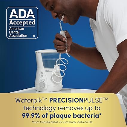 Q680.00 Enviamos a toda la republica pago contra entrega. Aceptamos tarjeta de crédito y debito. SUELO DE AGUA AVANZADA: Aquarius es un irrigador dental con todas las funciones que ofrece una presión mejorada con 10 ajustes para una limpieza personalizada, modo de masaje para la estimulación de las encías, además de un temporizador/marcapasador incorporado se detiene brevemente a 30 segundos y 1 minuto para rastrear el tiempo de uso del hilo dental. Fácil de usar: cuenta con un gran depósito para más de 90 segundos de uso, no requiere relleno. La pequeña varita de hilo dental maniobrable hace que sea fácil usar hilo dental en todas las áreas, incluidos los dientes posteriores, e incluye un práctico interruptor de encendido/apagado de agua. Recomendado por dentistas: Waterpik es una marca de irrigador dental recomendada por profesionales dentales y la primera marca de irrigador dental en obtener el sello de aceptación de la Asociación Dental Americana (ADA) por seguridad y eficacia. CARACTERÍSTICAS CLAVE: 7 puntas para múltiples miembros de la familia y necesidades, 10 ajustes de presión seguros y efectivos, depósito extraíble de 22 onzas (apto para lavavajillas en la parte superior para una fácil limpieza), tiempo de hilo dental de 90 segundos, rotación de 360 puntas, 120 VAC/60 Hz para uso solo en América del Norte. Eficacia comprobada: los irrigadores dentales Waterpik utilizan la tecnología PrecisionPulse para ofrecer una combinación de presión de agua y pulsaciones, eliminando hasta el 99.9 por ciento de las bacterias de la placa de las áreas tratadas que causan gingivitis, caries y mal aliento. Enviamos a toda la republica pago contra entrega. Aceptamos tarjeta de crédito y debito.