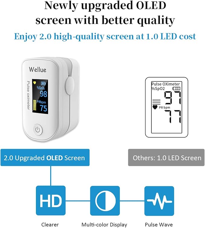 Precisa y fiable: mide con precisión tu nivel de sangre 02, frecuencia del pulso, fuerza del pulso y forma de onda de pulso y muéstralos cómodamente en una gran pantalla OLED.