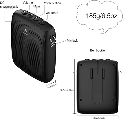 Q295.00 WinBridge – Amplificador de voz inalámbrico para profesores con micrófono de auriculares Bluetooth El maestro debe tener: el amplificador de voz Bluetooth WB002 puede ser un regalo reflexivo y práctico para un profesor que habla con frecuencia frente a grupos grandes o aulas. La potente salida de 15 W podría cubrir 10000 pies cuadrados, recomendamos utilizar este sistema de altavoces de micrófono portátil para interiores como el aula, es bastante ruidoso para que una clase de alrededor de 50 estudiantes de secundaria te escuchen. Fácil emparejamiento y operación: la unidad de amplificador de voz inalámbrica es muy fácil de emparejar con el micrófono de auriculares Bluetooth, simplemente enciéndelos y se emparejarán automáticamente. La operación es sencilla, incluso si pudieras sin necesidad del manual Todo el mundo puede subir y ejecutar muy rápidamente. Larga duración de la batería: amplificador de voz portátil incorporado en batería recargable de 2600mAh que podría obtener hasta 7-9 horas de amplificación de voz con una sola carga, perfecto para profesores y presentadores. Auriculares de micrófono inalámbrico de 8 a 10 horas. Ambos se cargan rápidamente con el cable de carga tipo C incluido. Ligero y versátil: el amplificador de voz Bluetooth es ligero de llevar, se puede enganchar a un cinturón o colgar alrededor del cuello con la correa para el cuello suministrada. Los auriculares Bluetooth son ligeros y no se deslizan de la cabeza. Bueno, piensa que los micrófonos inalámbricos vienen en dos partes, también se puede utilizar como micrófono de mano si alguien quiere usarlo de esa manera. Los auriculares se separan muy fácilmente para su almacenamiento. Asequible y confiable: el amplificador de voz WB002 es un amplificador personal/altavoz asequible pero confiable que viene con un auricular/micrófono Bluetooth, un clip para el cinturón y un cordón. WinBridge ofrece una garantía de dos años y una política de devolución de 30 días para mayor tranquilidad. Enviamos a toda la republica pago contra entrega. Aceptamos tarjeta de crédito y debito.