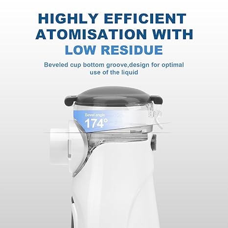 - Evita obstrucciones: el nebulizador portátil adopta el diseño de taza de medicina desmontable, que es conveniente para limpiar los residuos de medicina restantes en el vaso de medicina. Simplemente rellena agua del grifo o solución de vinagre antes o después de cada uso. Nueva actualización, pulsa el interruptor de encendido durante 5 segundos para iniciar el modo de autolimpieza.