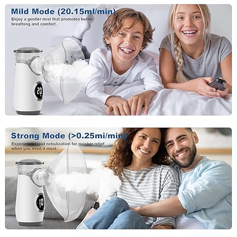 - Dos modos de funcionamiento: el nebulizador tiene el primero es un modo fuerte de 10 minutos recomendado para adultos. Después de encenderlo, pulsa el botón de nuevo para utilizar el modo suave de 20 minutos adecuado para niños. Ofrecemos una gama completa de accesorios para satisfacer diversas necesidades de nebulización.
