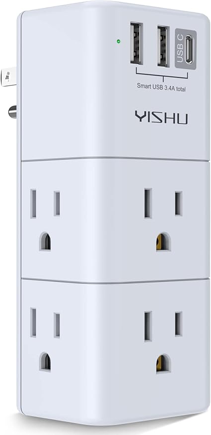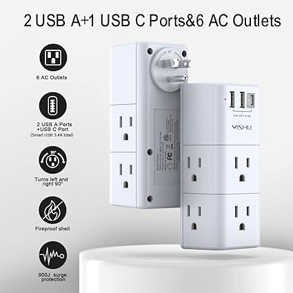 Q145.00 YISHU – Extensor de toma de corriente múltiple USB, protector de sobretensiones con enchufe 【Adaptador de enchufe de salida portátil】: Divisor de 6 salidas de CA (3 lados) con protector de sobretensiones incorporado (900 julios) y 3 puertos de carga USB (salida total DC 5V/3.4A), enchufe de CA giratorio de 90 grados. La luz indicadora LED con conexión a tierra muestra que es seguro de usar. 【Toma de enchufe múltiple】: regleta de alimentación de diseño único de 3 lados con 6 salidas de CA, utiliza 3 adaptadores grandes o 6 enchufes estándar. el enchufe giratorio de CA puede girar a la izquierda y a la derecha 90 grados convenientemente, utilizar en cualquier lugar necesario. Los mejores rellenos de calcetines ideales para adultos 【Puertos USB A y C de carga inteligente】: 2 puertos de carga USB A y puerto de carga 1USB C (salida total DC 5V/3.4A), cada puerto USB A cuenta con una salida máxima de 5 V/2.4 A. El puerto de carga USB C cuenta con 5V/3A MAX. Tecnología inteligente incorporada, detecta dispositivos de carga y ofrece una velocidad de carga óptima automáticamente, compatible con Kindle y la mayoría de los dispositivos USB. NOTA: El puerto UCB-C no es Quick Charger 3.0, no es compatible con ningún otro dispositivo que necesite voltaje de carga de 9 ~ 22 V. 【Salidas protectoras contra sobretensiones】: la toma de enchufe múltiple proporciona protector contra sobretensiones contra picos eléctricos. Tres circuitos de protección contra sobretensiones complementarios, televisores (supresor de voltaje transitorio) MOV (varistor de óxido metálico) GDT (tubo de descarga de gas), con velocidad de respuesta inferior a 1 Ns, y capacidad mínima de absorción de energía de 900 julios, su tiempo de respuesta es mucho más corto que el circuito protector de sobretensiones MOV tradicional, realmente proporciona una gran protección de sus preciosos dispositivos enchufados. Seguridad garantizada y servicio posventa: certificado ETL, nuestro servicio al cliente amigable y confiable te responderá en 24 horas. Puedes comprar con confianza, con nuestra devolución de 30 días y garantía de 12 meses. Enviamos a toda la republica pago contra entrega. Aceptamos tarjeta de crédito y debito.