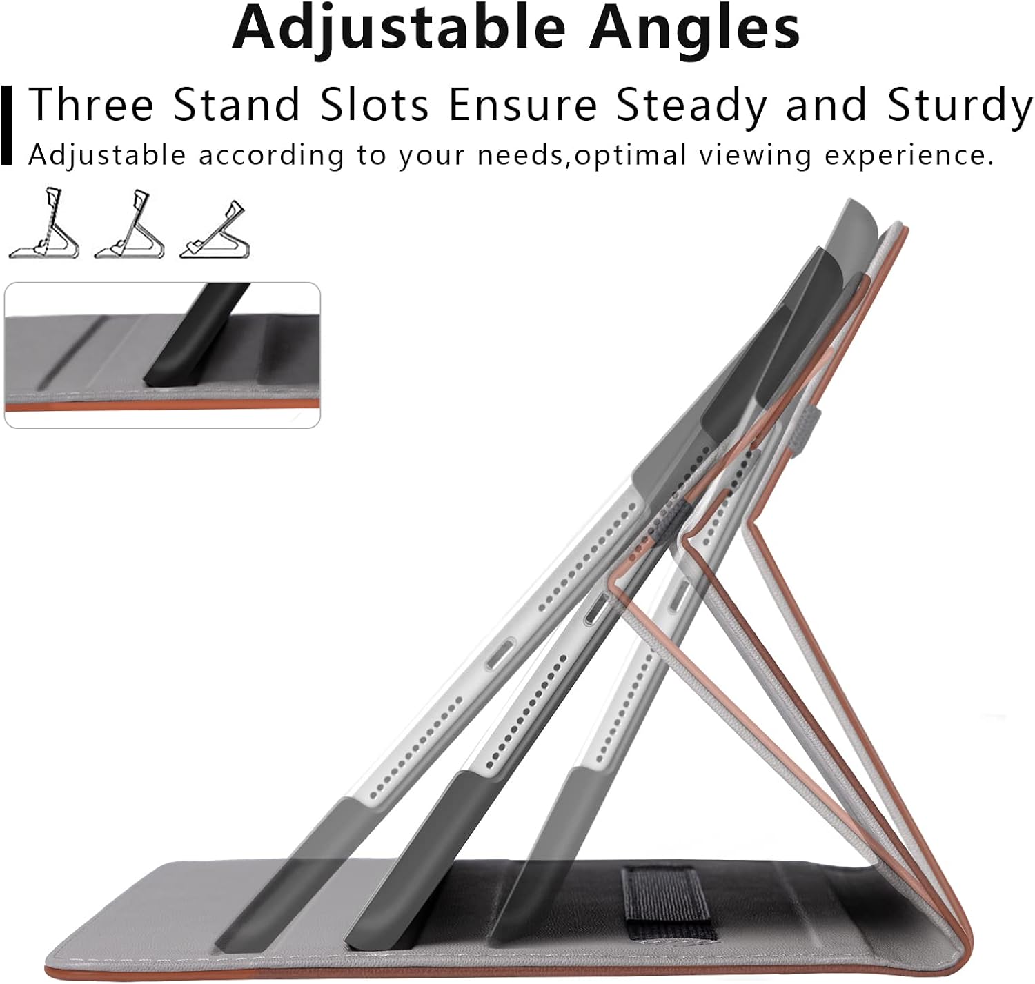 [Múltiples ángulos de visión]: la funda para iPad proporciona múltiples ranuras que pueden configurar múltiples ángulos de soporte horizontales para ver películas o escribir.